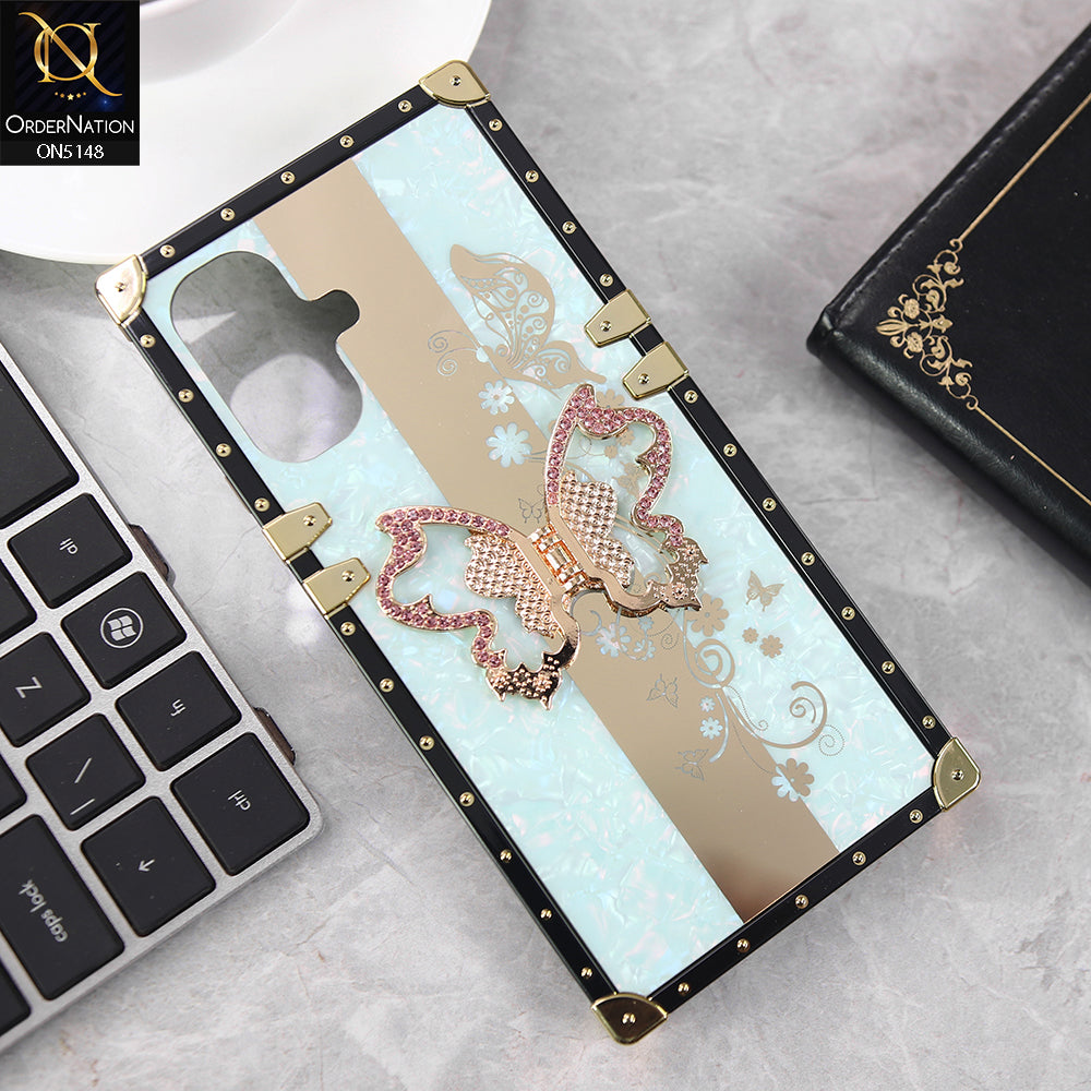 Infinix Smart 10 Cover - Aqua - Luxury Shiny Rhinestone Butterfly Electroplated Square Trunk Soft Case
