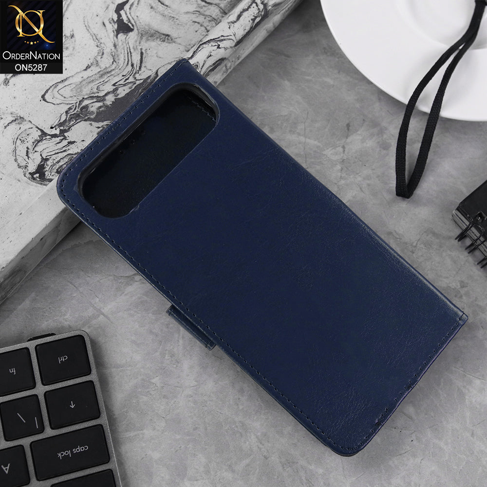 Infinix Smart 10 Plus Cover - Blue - Premium PU Leather Magnetic Flip Book Card Slots Wallet Soft Case