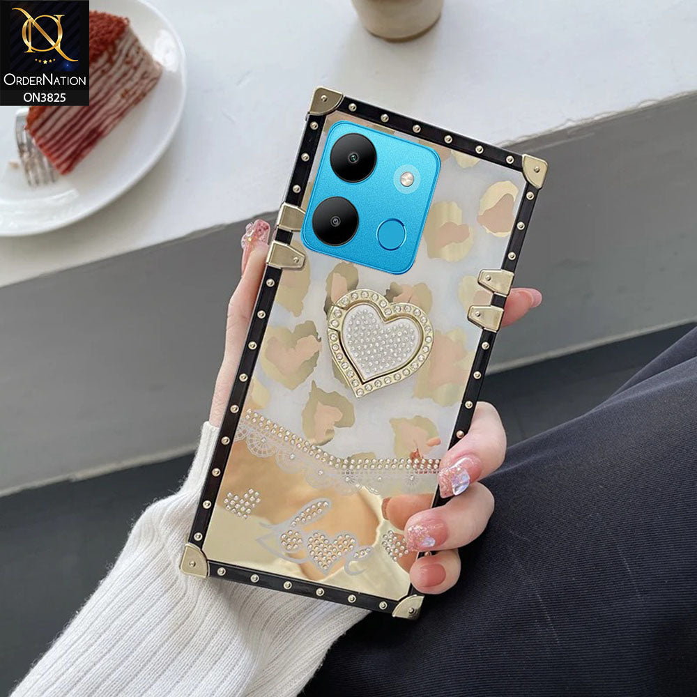 Infinix Smart 7 Cover - Design2 - Heart Bling Diamond Glitter Soft TPU Trunk Case With Ring Holder