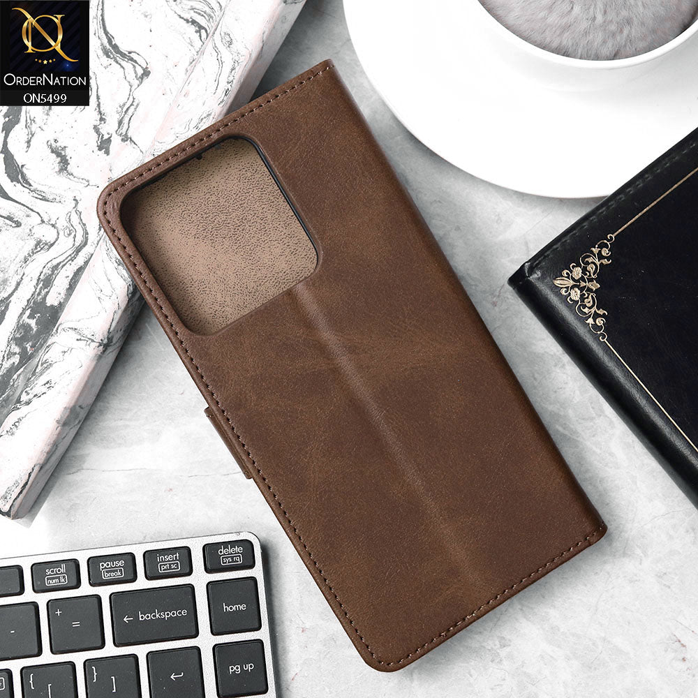 Infinix Smart 7 Plus Cover - Dark Brown - Premium PU Leather Magnetic Flip Book Card Slots Wallet Soft Case