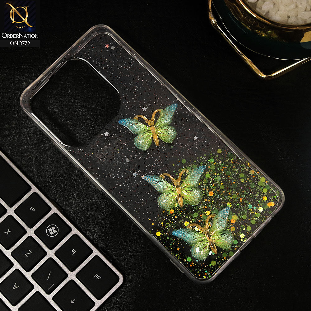 Infinix Smart 7 Plus Cover - Green - Shiny Butterfly Glitter Bling Soft Case (Glitter does not move)