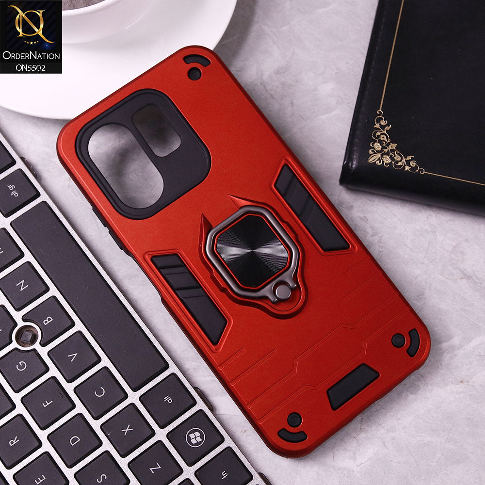 Infinix Smart 9 HD Cover - Red - New Dual PC + TPU Hybrid Style Protective Soft Border Case With Kickstand Holder