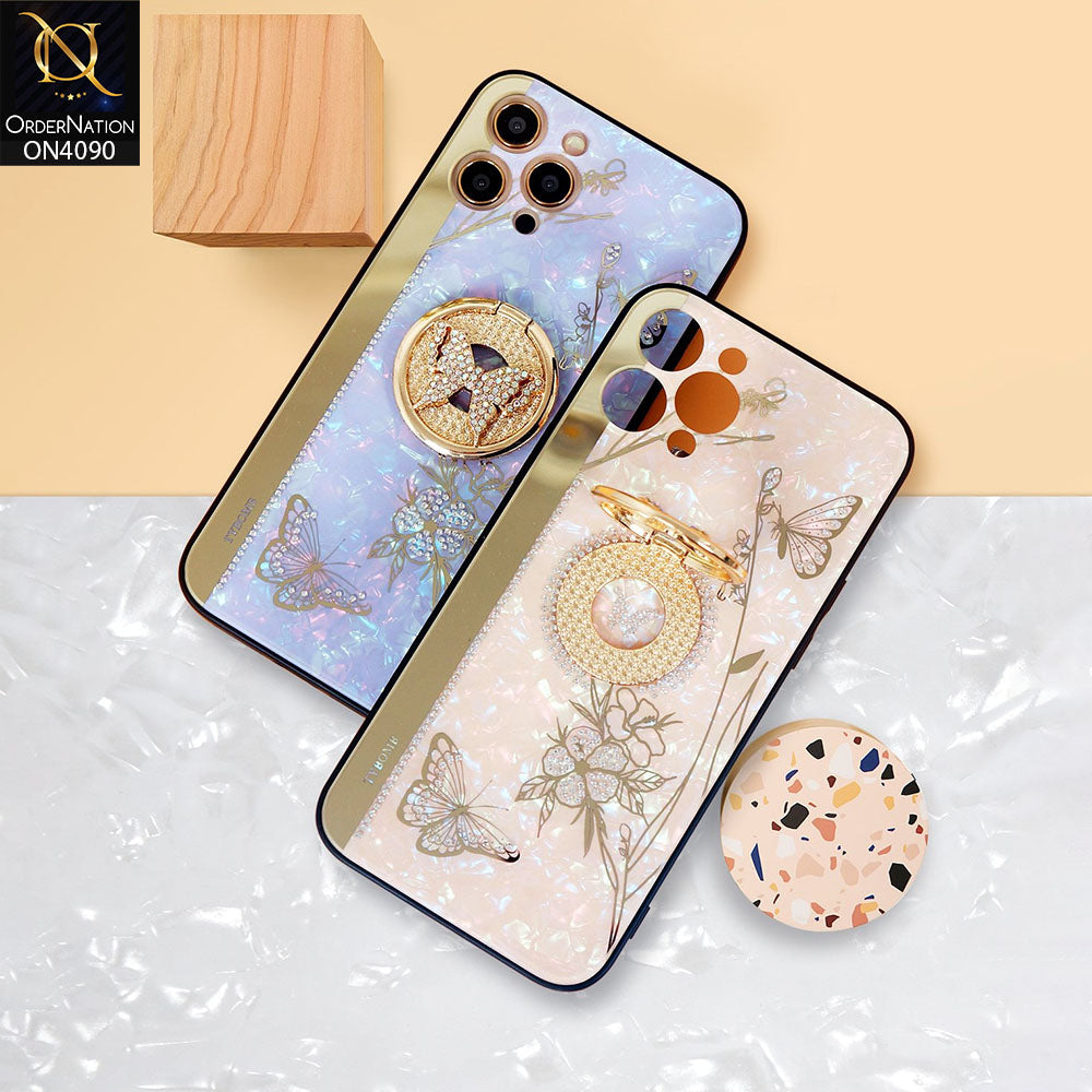 iPhone 11 Pro Cover - Golden - Cute Bling Diamond Butterfly Flower with Ring Stand,Glitter Girly Pearl Back Soft Silicone Cover