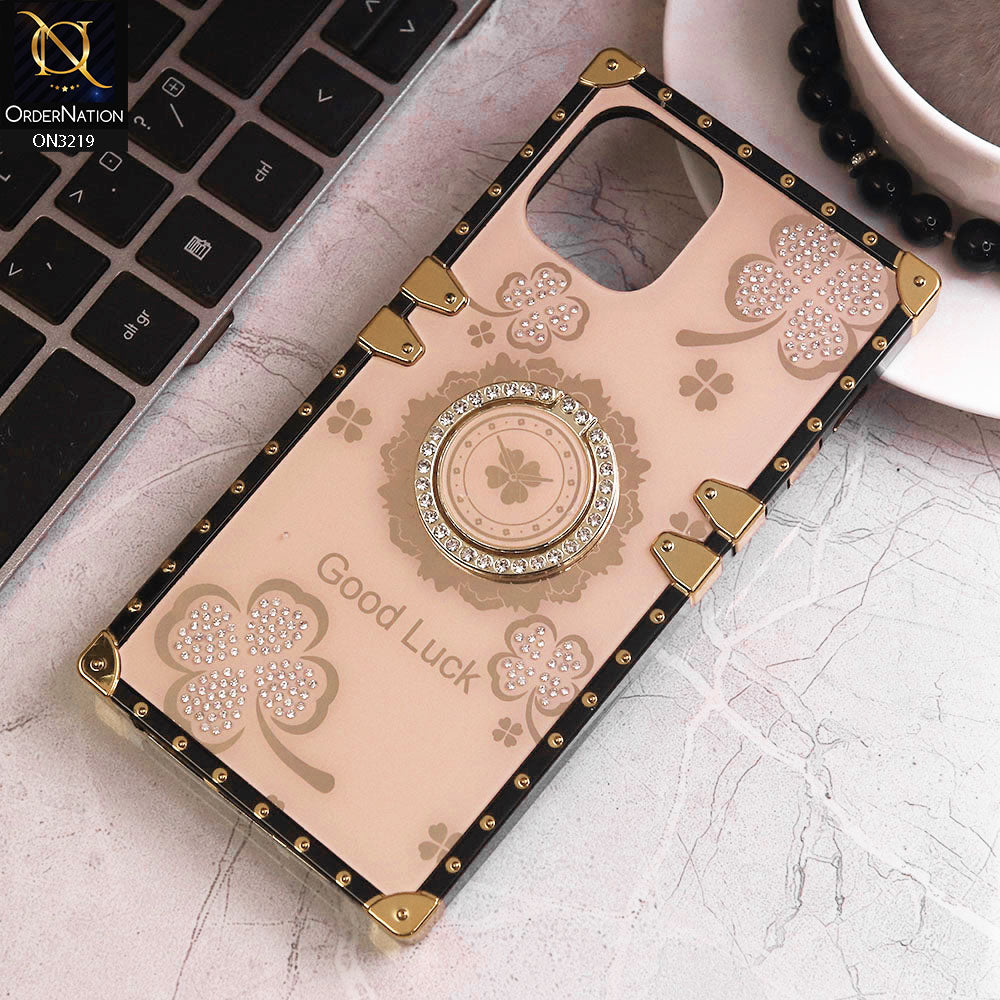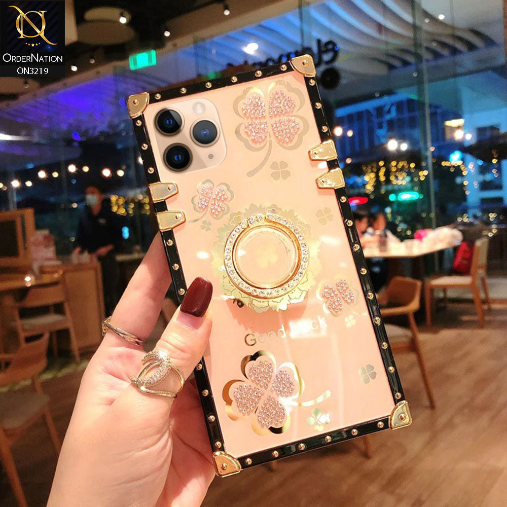 iPhone 11 Pro Cover - Golden - Square Bling Diamond Glitter Soft TPU Trunk Case with Ring Holder