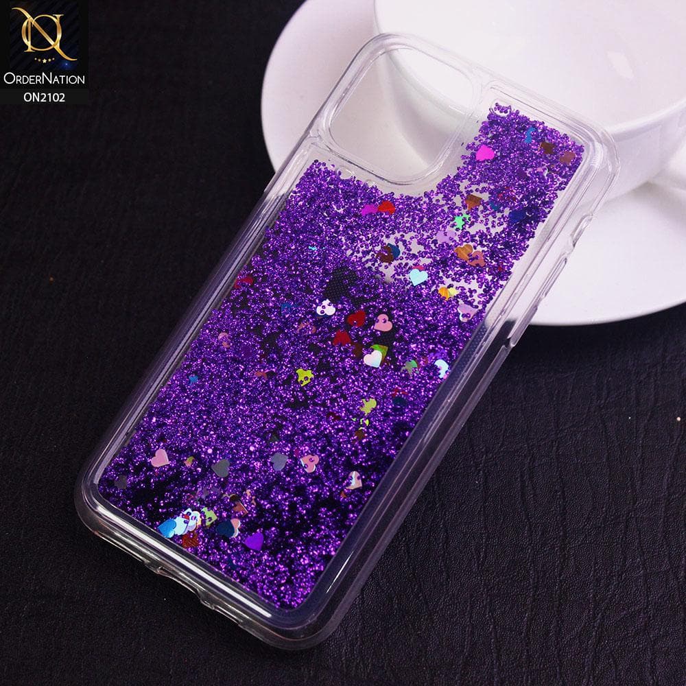 iPhone 11 Pro Cover - Purple - Cute Love Hearts Liquid Glitter Pc Back Case