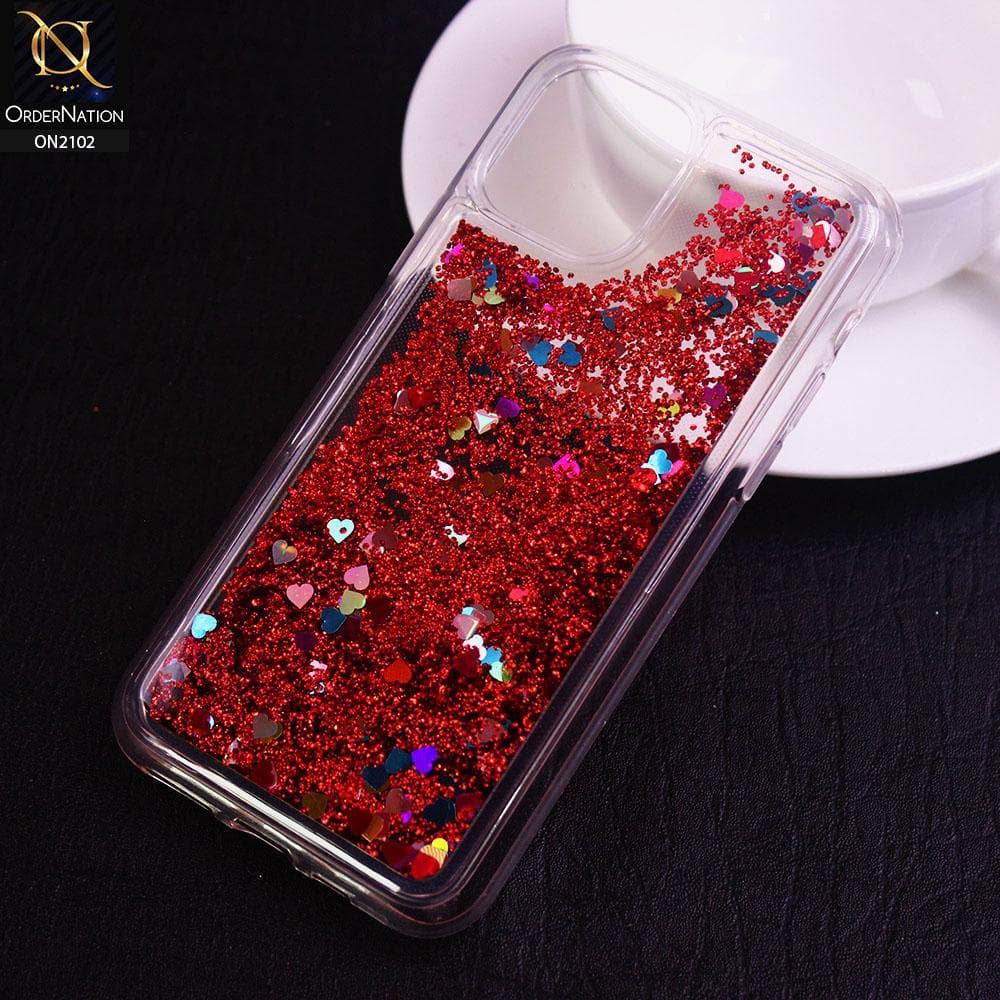 iPhone 11 Pro Cover - Red - Cute Love Hearts Liquid Glitter Pc Back Case