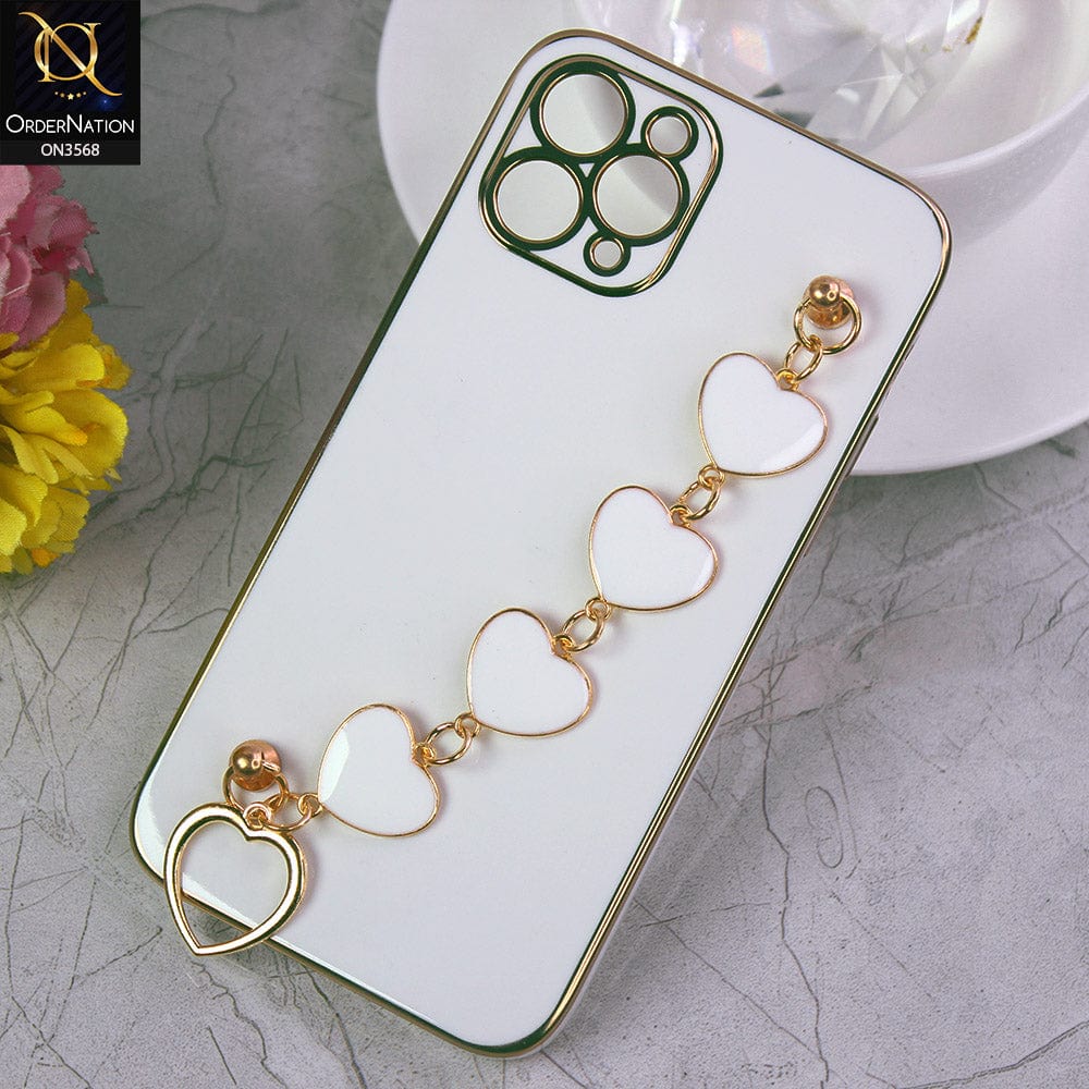 iPhone 11 Pro Cover - White - Electroplated Edges Soft Silicone Heart Chain Fingers Holder Case with Camera Protection