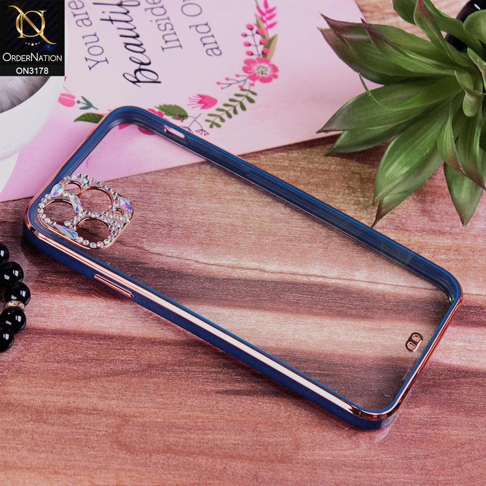 iPhone 11 Pro Max Cover - Blue - Electroplating Soft Square Straight Edge Transparent Soft Case With Rhinestone Camera Protection