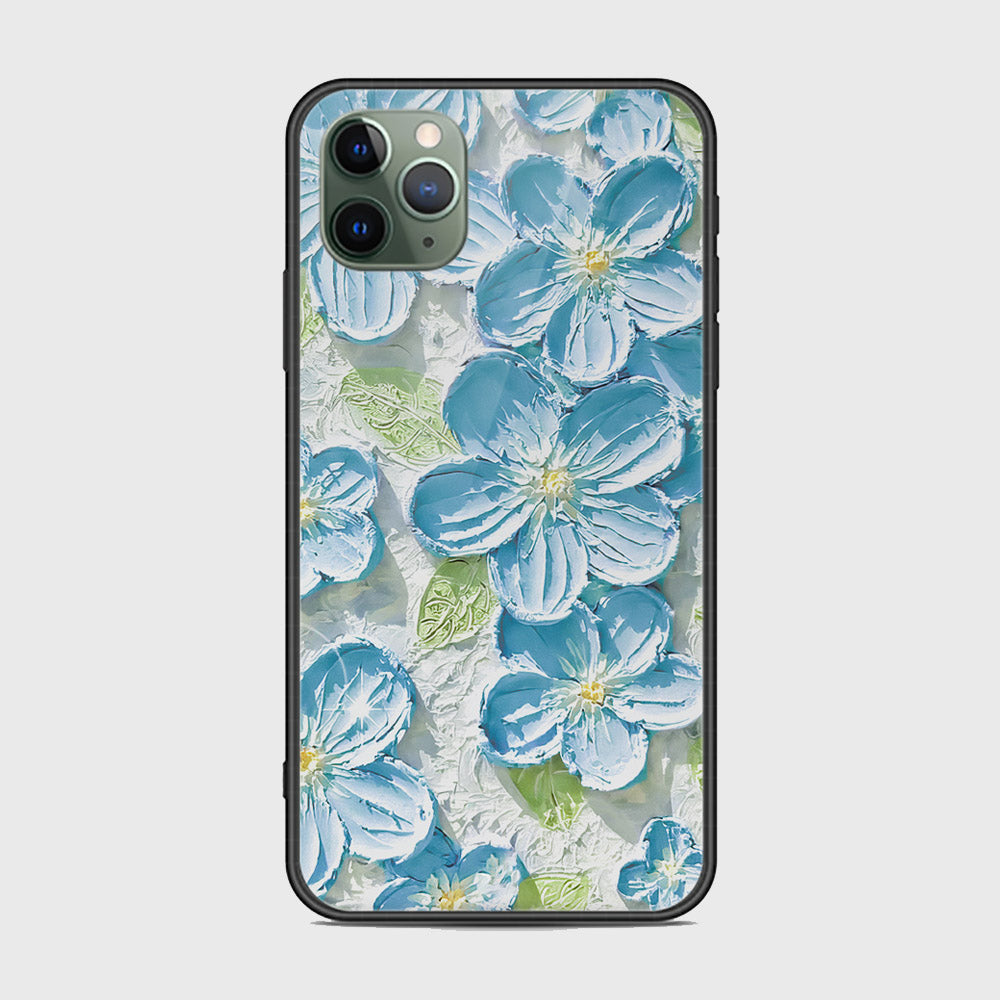 iPhone 11 Pro Max Cover - Floral Series - Design 12 - Grey & Green - HQ Ultra Shine Premium Infinity Glass Soft Silicon Borders Case