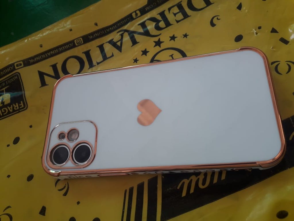 iPhone 11 Pro Max Cover - White - Electroplated Love Heart Soft Shiny Case
