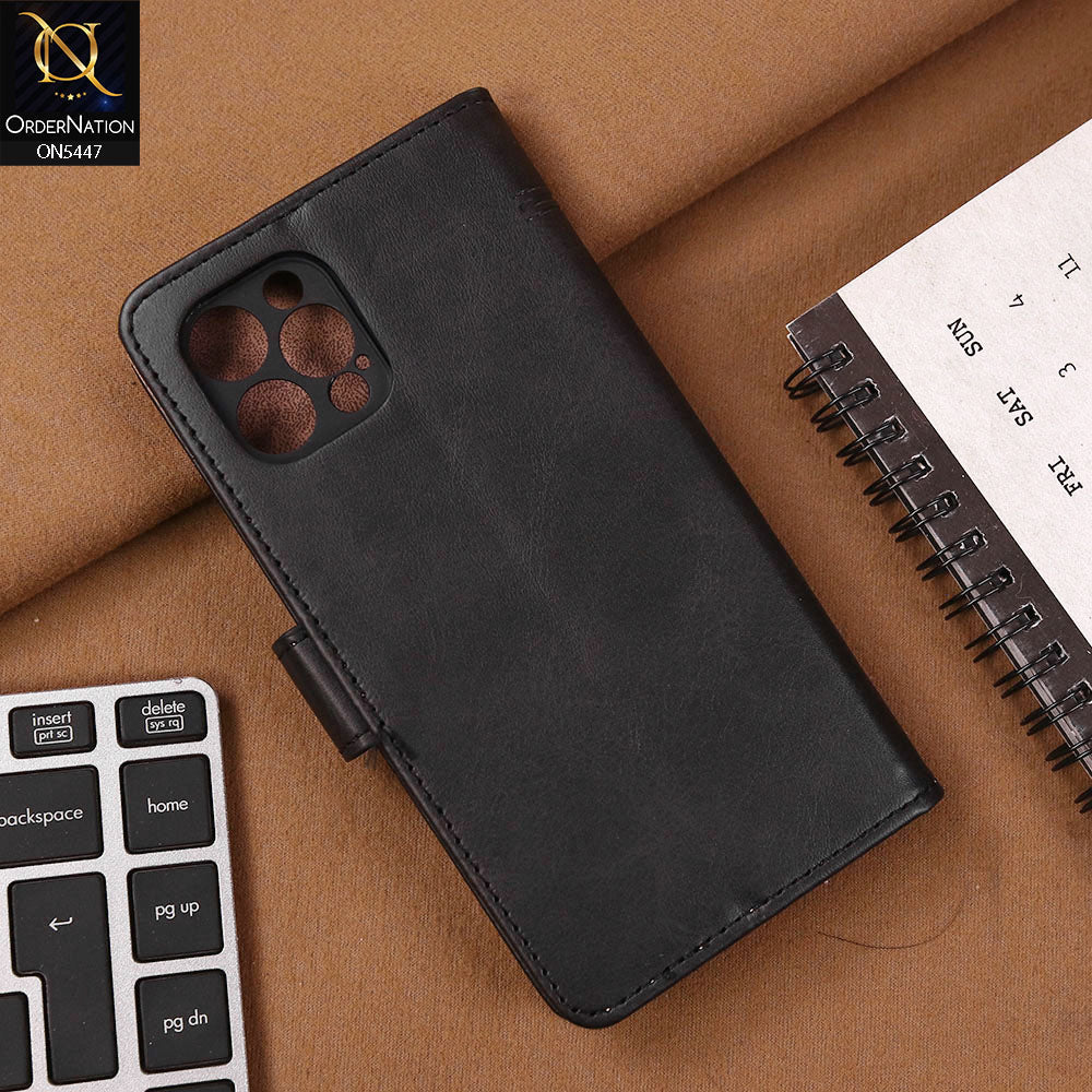 iPhone 12 Pro Cover - Black - Premium Leather Megantic Flip Book Covers With Card Holding Option