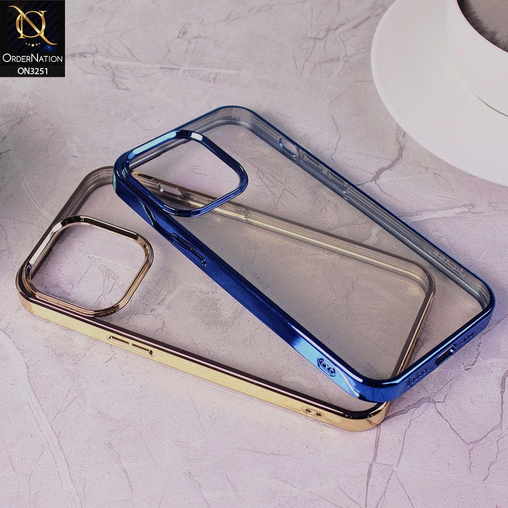 iPhone 13 Pro Cover - Blue - J-Case Electroplating Color Borders Clear Transparent Soft Case