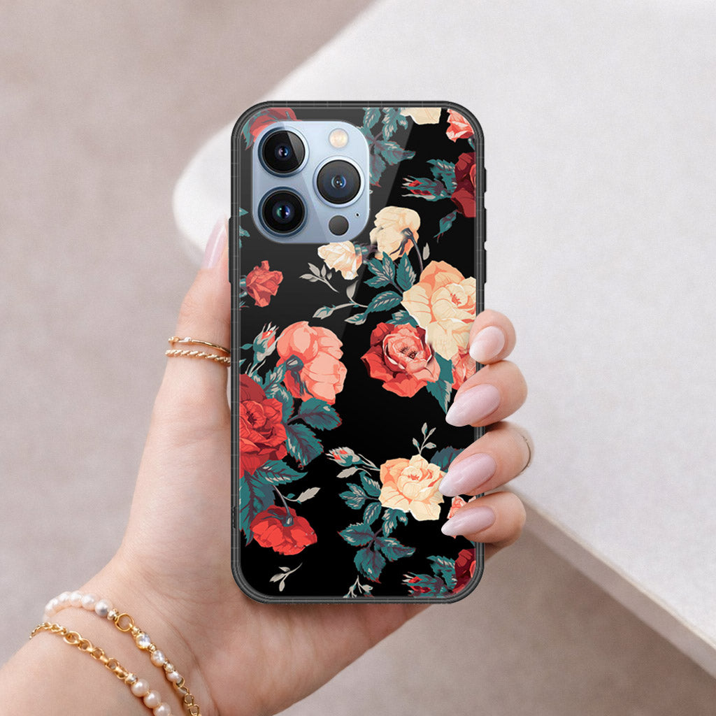 iPhone 13 Pro Cover - Floral Series 2 - HQ Ultra Shine Premium Infinity Glass Soft Silicon Borders Case