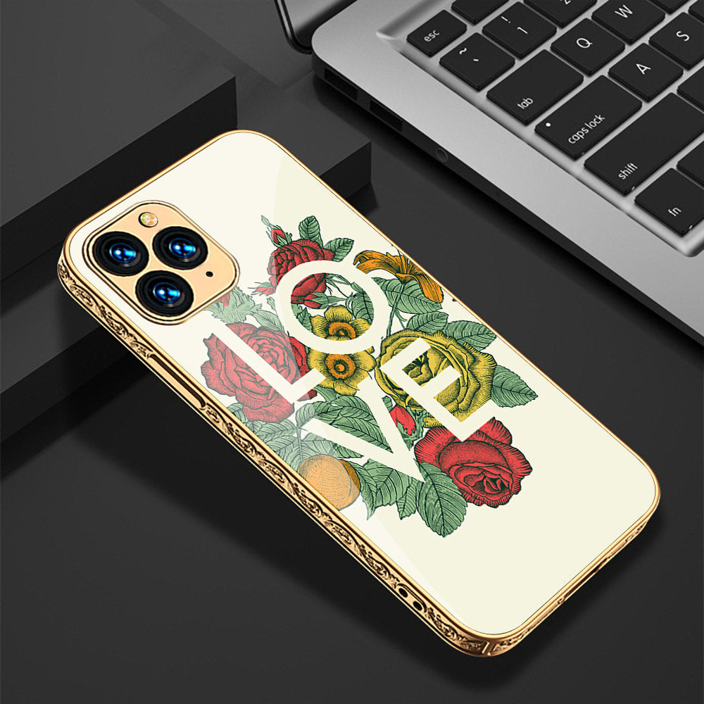 iPhone 13 Pro Cover - Floral Series 2 - Premium Electroplated Shutterproof Case Soft Silicon Borders Case