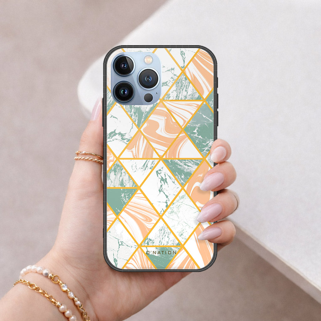 iPhone 14 Pro Cover - O'Nation Shades of Marble Series - HQ Ultra Shine Premium Infinity Glass Soft Silicon Borders Case