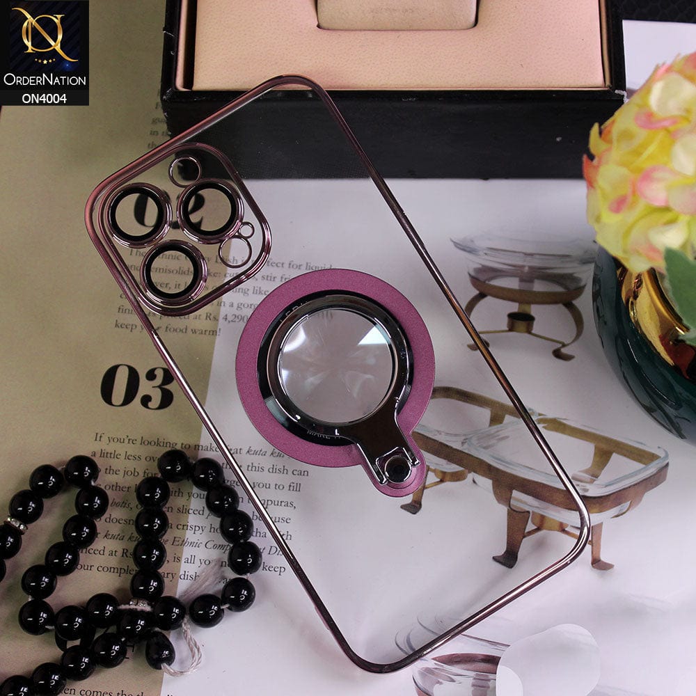 iPhone 14 Pro Max Cover - Rose Gold - New Luxuary Metal Holding Stand Camera Lense Protective MagSafe Case (Magsafe Notification Enabled)