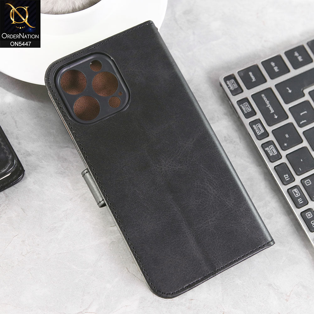 iPhone 15 Pro Cover - Black - Premium Leather Megantic Flip Book Covers With Card Holding Option