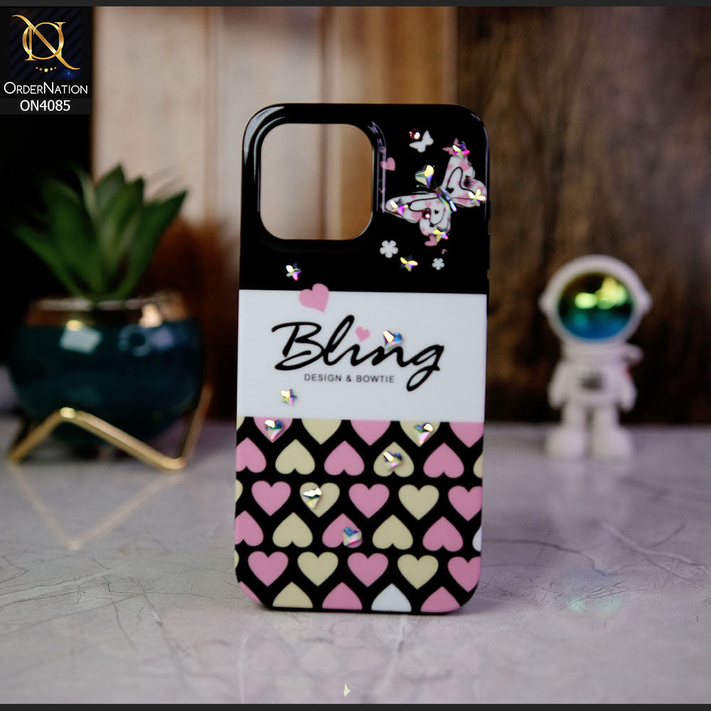iPhone 15 Pro - Design 2 - Simple Pattern With Luxurious Crystal Diamonds Sparkling And Elegant