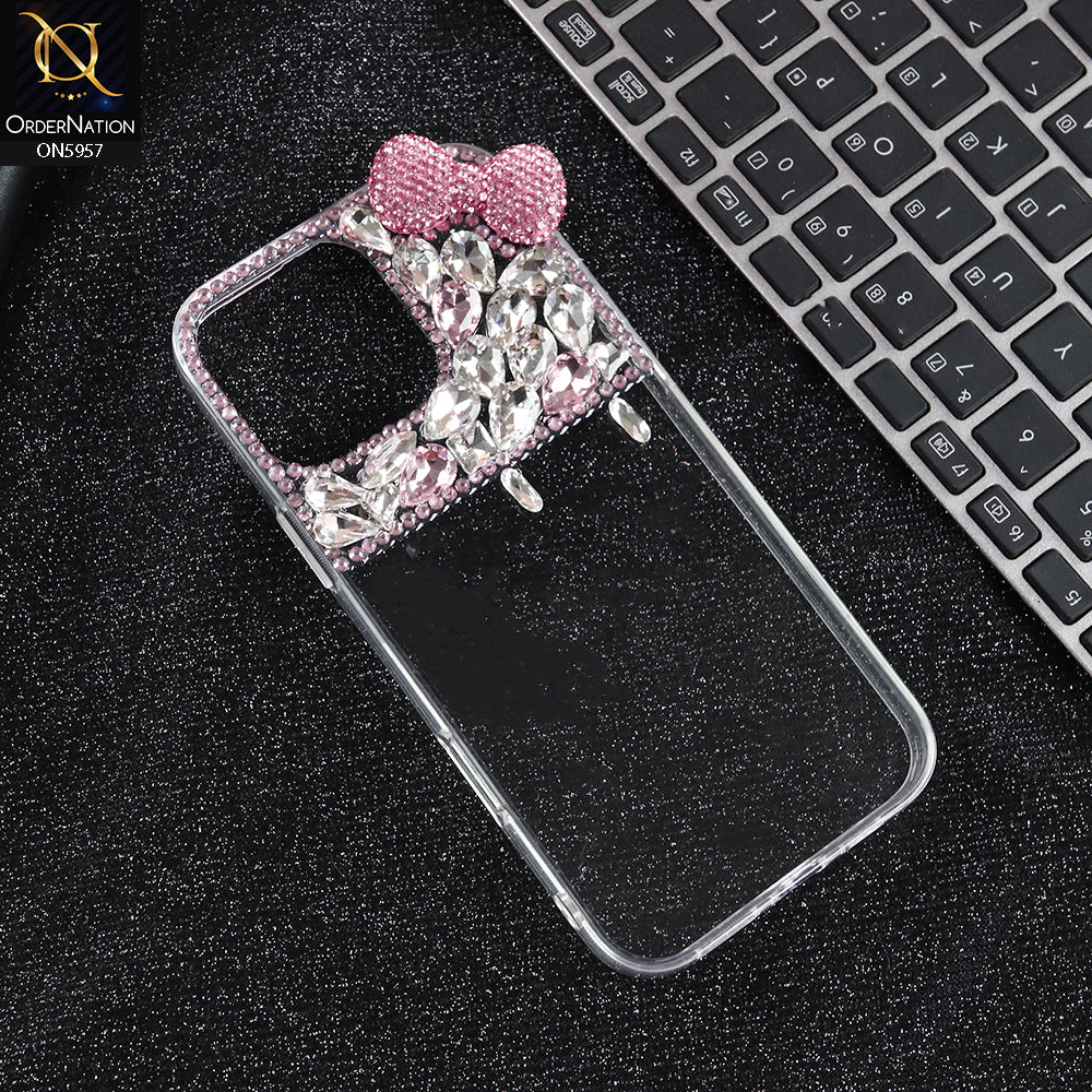 iPhone 15 Pro Max Cover - Pink - Glamorize 3D RhineStones And Bow Clear Case
