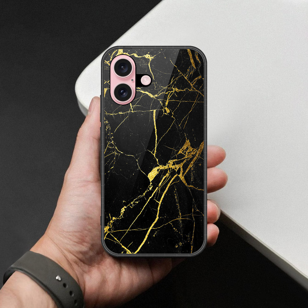 iPhone 16 Plus - Black Marble Series  - HQ Ultra Shine Premium Infinity Glass Soft Silicon Borders Case