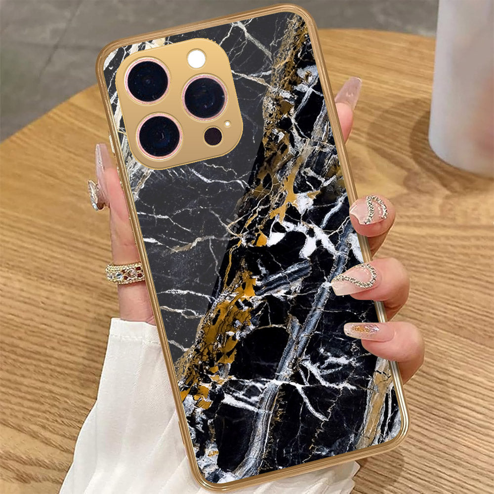 iPhone 16 Pro Max - Black Marble Series - HQ Premium Shine Durable Golden Electroplate Case