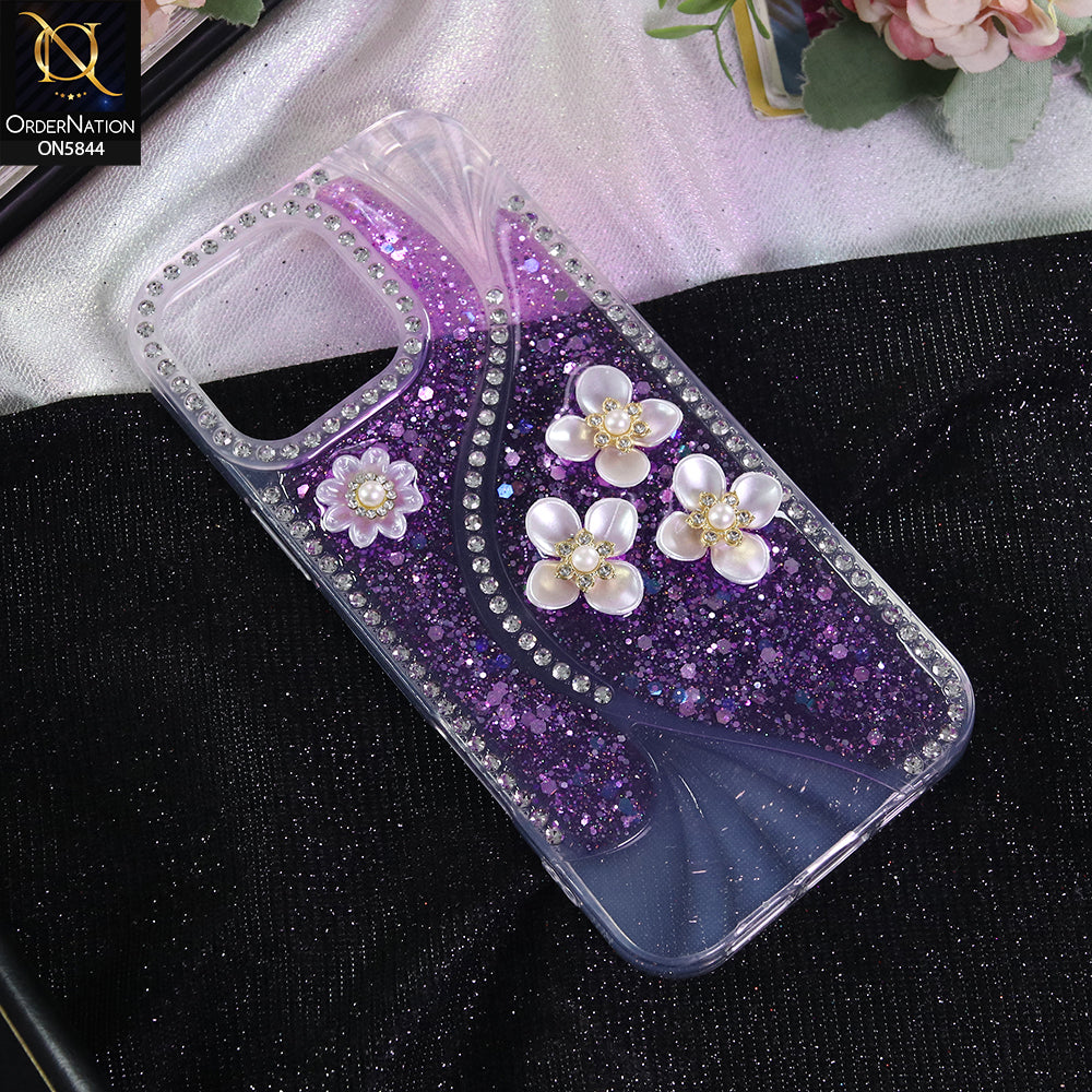 iPhone 16 Pro Max Cover - Purple - New Premium Fancy Flower Bling Glitter Rinestone Soft Case