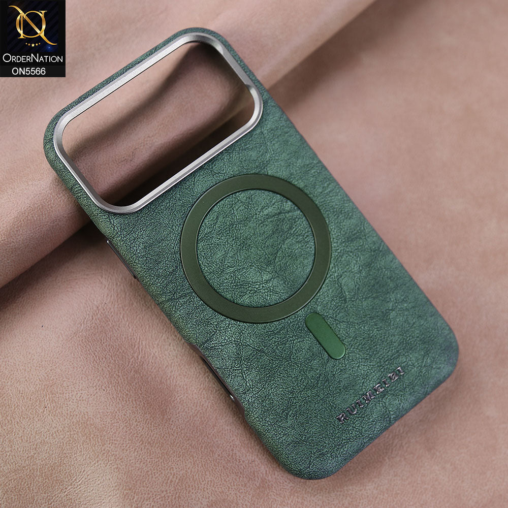 iPhone 17 Pro Max Cover - Green - New Premium RUIMEIBI High Quality Leather Textured  Case With Magsafe Soft Case