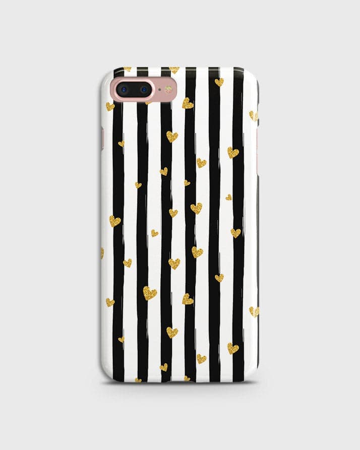 iPhone 7 Plus & iPhone 8 Plus - Trendy Black & White Lining With Golden Hearts Printed Hard Case With Life Time Colors Guarantee ( Fast Delivery )