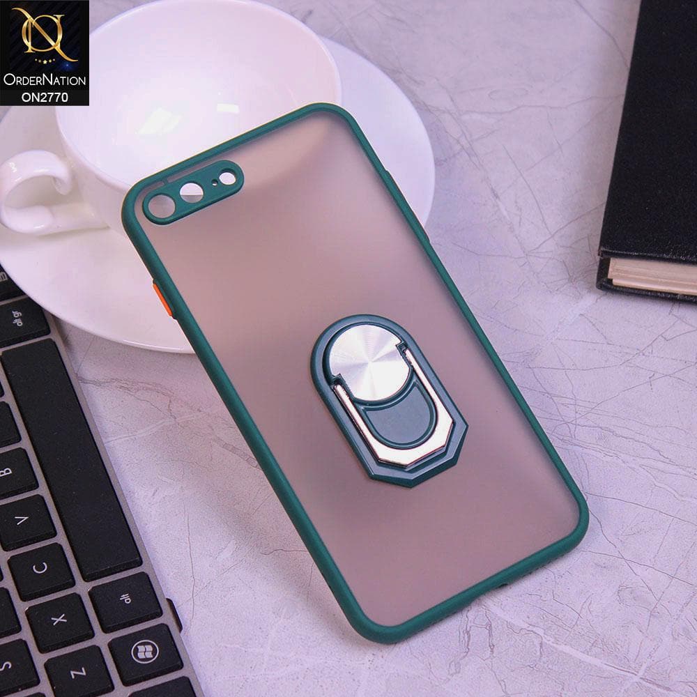 iPhone 8 Plus / 7 Plus Cover - Green - Semi Tranparent Matte Hard PC Camera Protection Kick Stand Ring Holder Protective Case