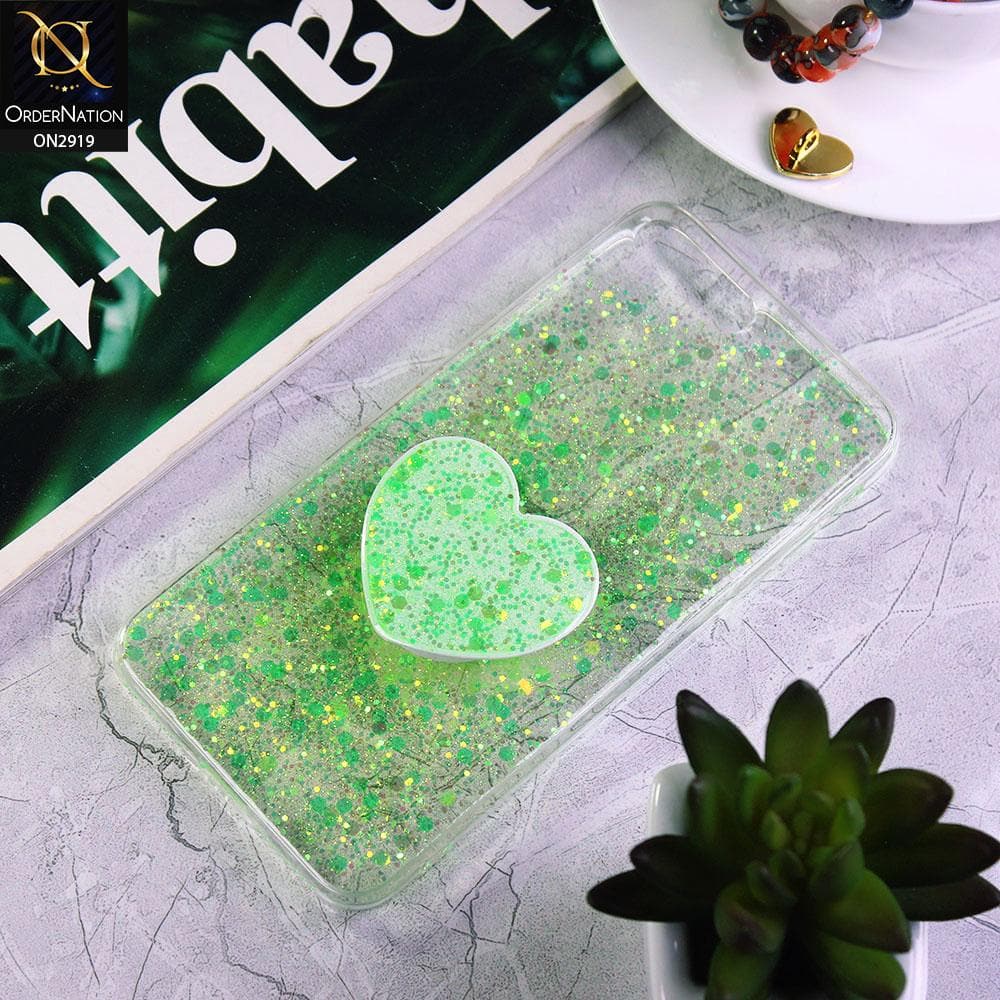 iPhone 8 Plus / 7 Plus Cover - Green - Shiny Fancy Glitter Case with Heart Mobile Holder - Glitter Does Not Move