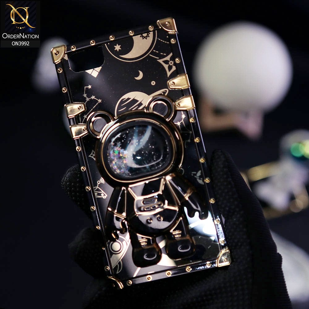 iPhone SE 2022 Cover - Black - New Luxury Space Case With Astronode Cute Folding Stand Holder Case