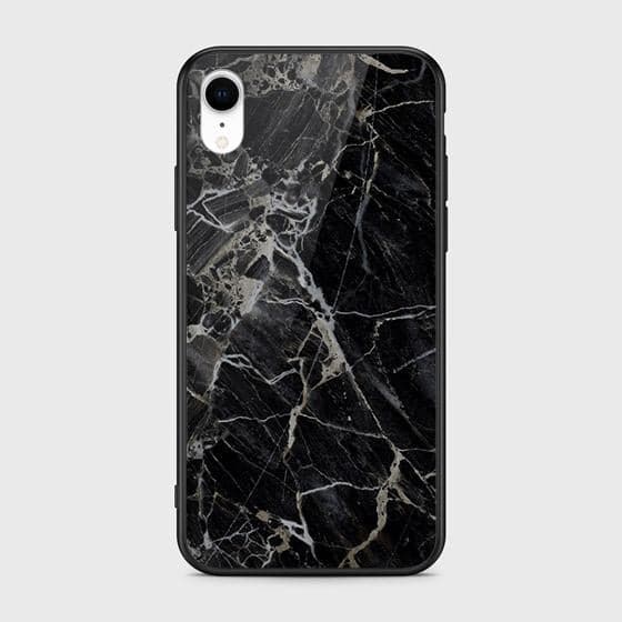 iPhone XR Cover - Black Marble Series - D189 - HQ Ultra Shine Premium Infinity Glass Soft Silicon Borders Case ( Fast Delivery )