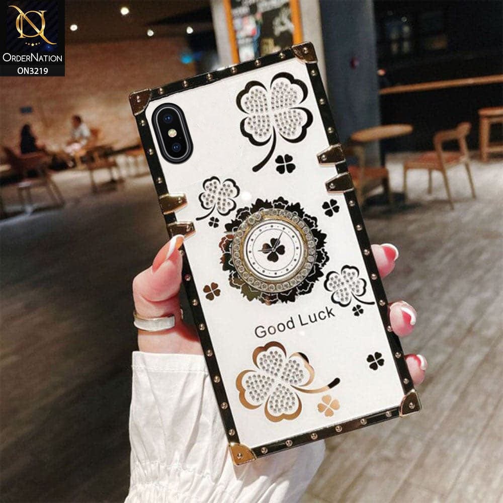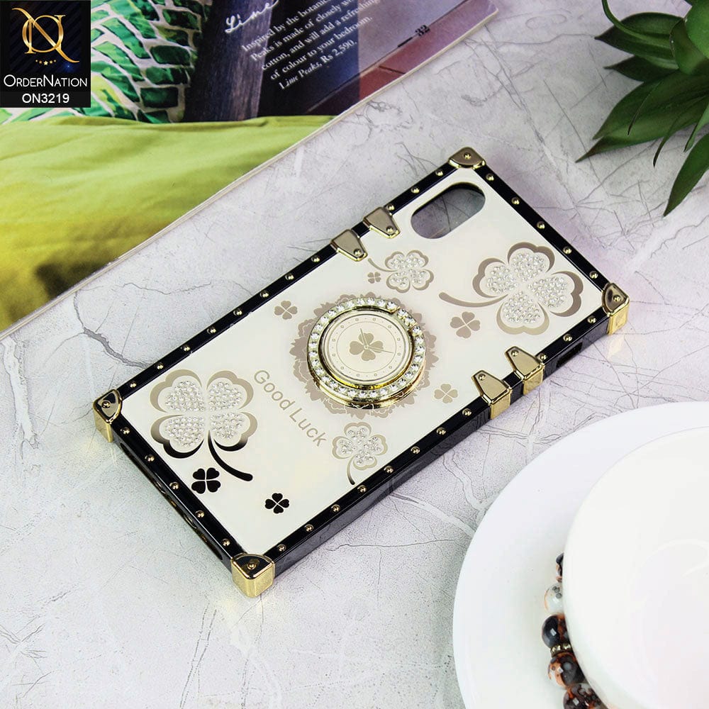 iPhone XS / X Cover - Ash White - Square Bling Diamond Glitter Soft TPU Trunk Case with Ring Holder