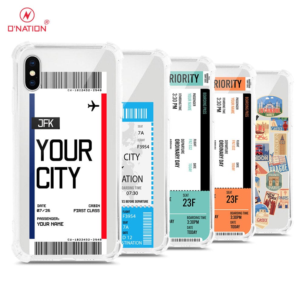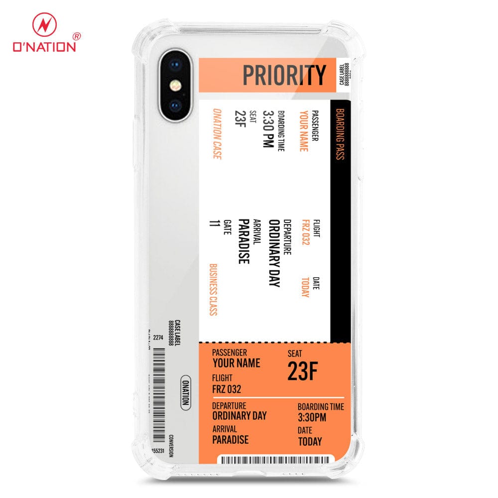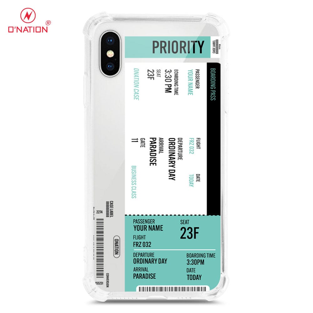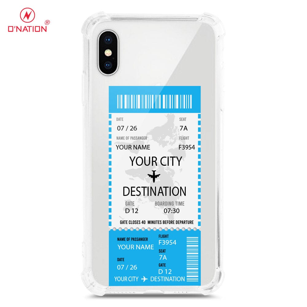 iPhone XS / X Cover - Personalised Boarding Pass Ticket Series - 5 Designs - Clear Phone Case - Soft Silicon Borders