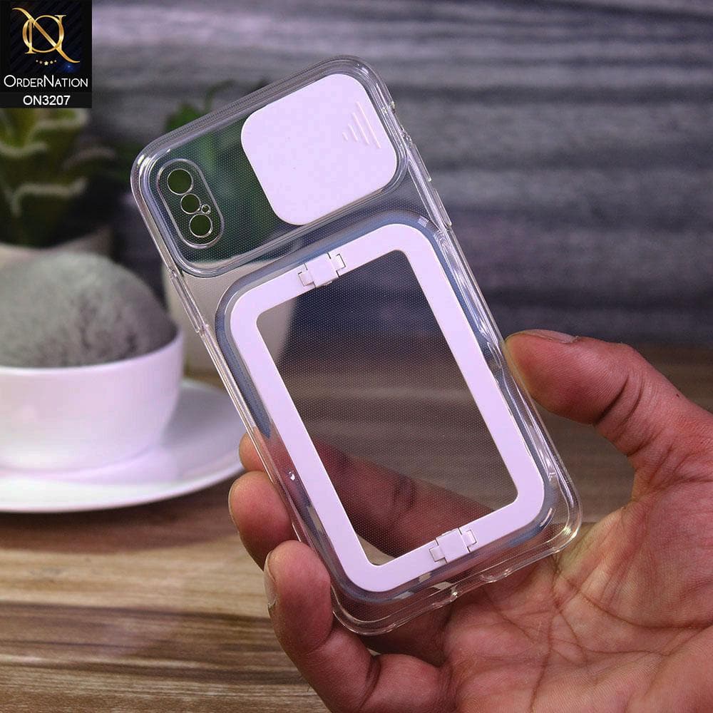 iPhone XS / X Cover - White - Grip Stand Holder Camera Protection Soft Transparent Case