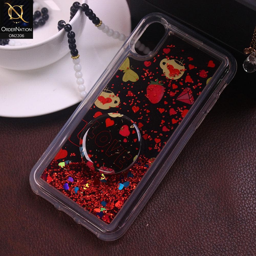 iPhone XS / X - Design 4 - New Elegant Liquid Glitter Soft Borders Case With Holder