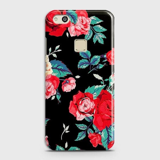 Huawei P10 Lite Cover - Luxury Vintage Red Flowers Printed Hard Case with Life Time Colors Guarantee