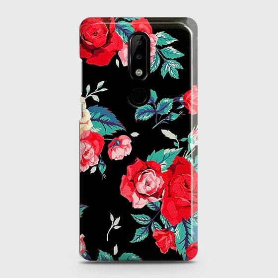 Nokia 5.1 Plus / Nokia X5 Cover - Luxury Vintage Red Flowers Printed Hard Case with Life Time Colors Guarantee