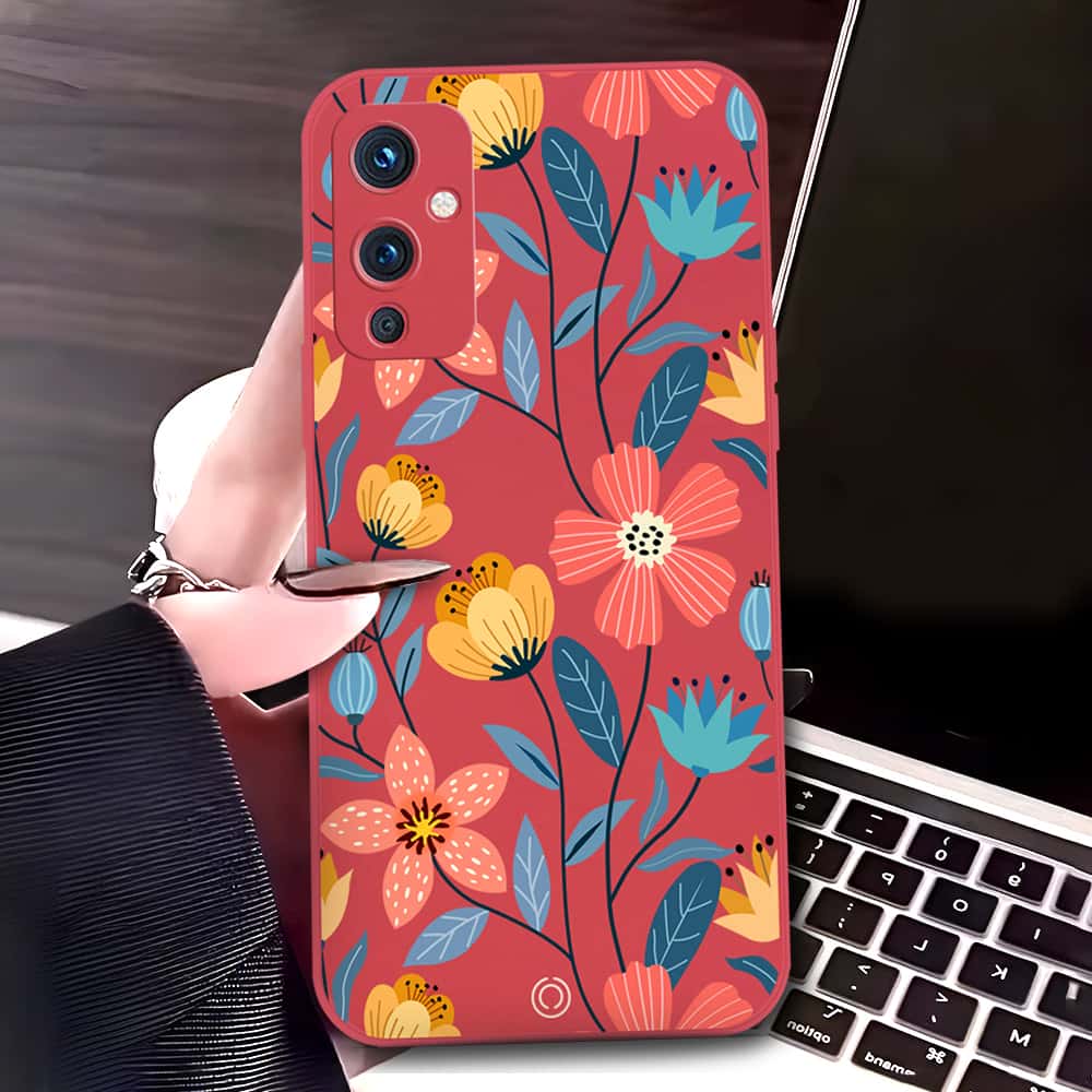 OnePlus 9 Pro Cover - Red - D2 - ONation Floral Series - HQ Liquid Silicone Soft Case