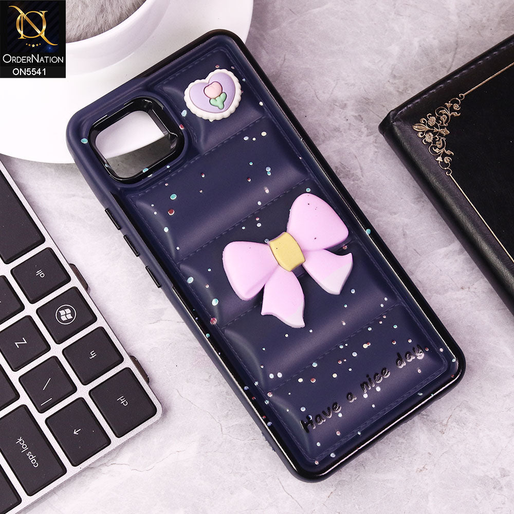 Oppo A16e Cover - Dark Blue -  New 3D Bow Soft Puffer Case With Metal Camera Ring