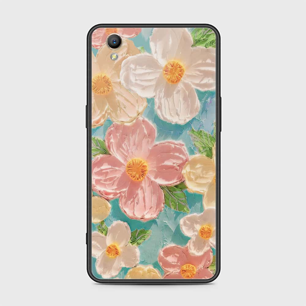 Oppo A37 Cover - Floral Series - Design 16 - Cyan & Pink - HQ Ultra Shine Premium Infinity Glass Soft Silicon Borders Case