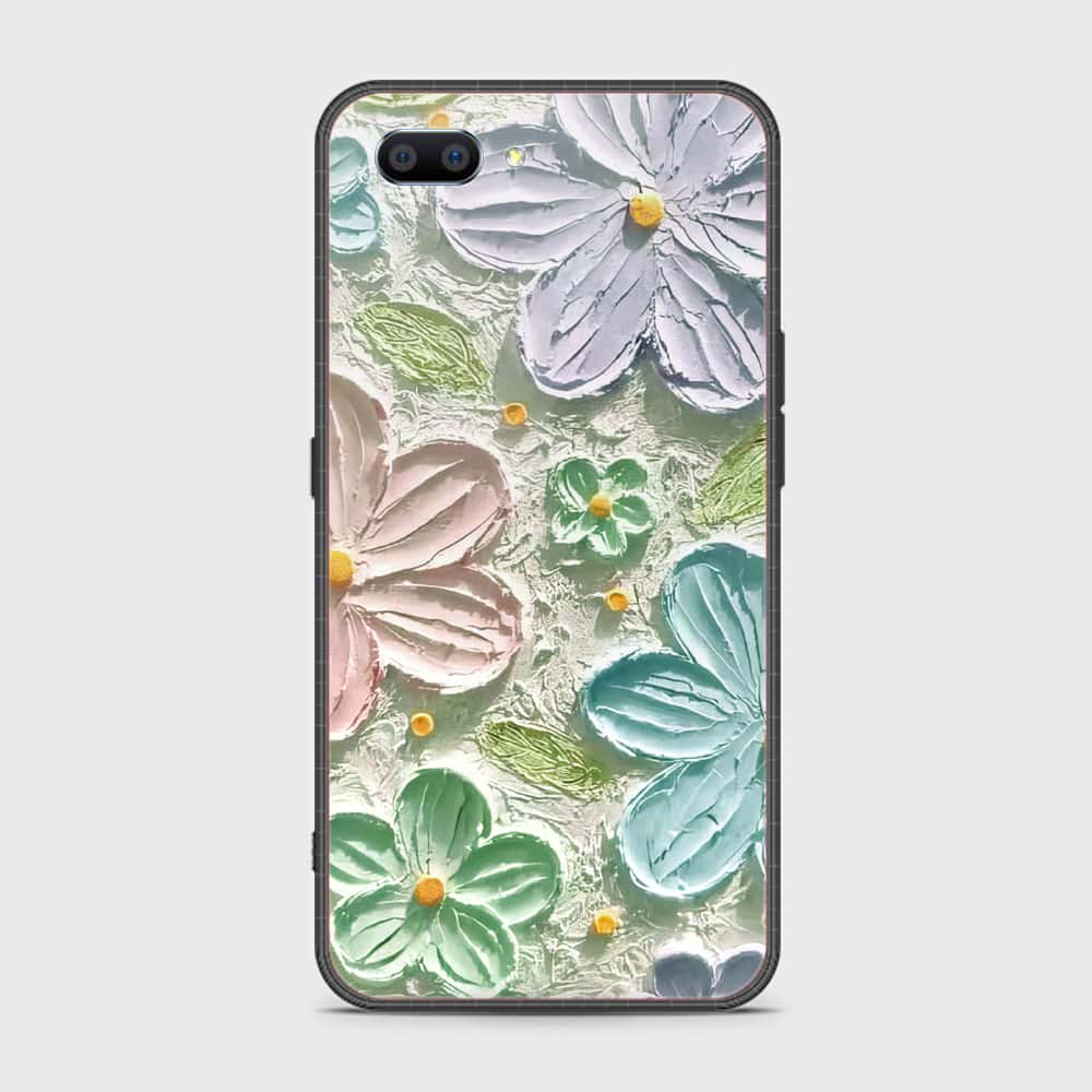 Oppo A3s Cover - Floral Series - Design 15 - Blue & Green - HQ Ultra Shine Premium Infinity Glass Soft Silicon Borders Case