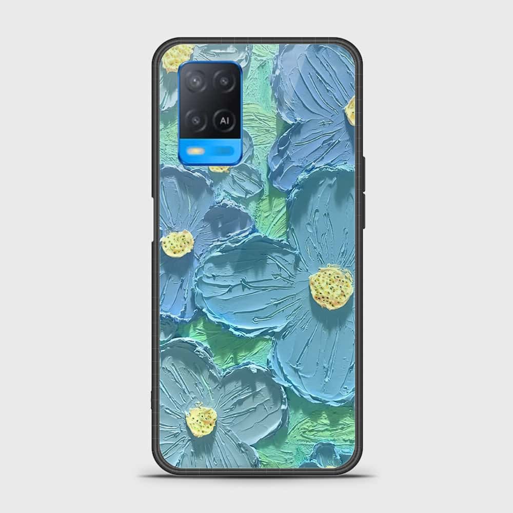 Oppo A54 4G Cover - Floral Series - Design 1 - Purple & Aqua - HQ Ultra Shine Premium Infinity Glass Soft Silicon Borders Case