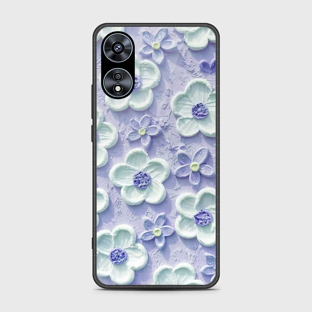 Oppo A58 4G Cover - Floral Series - Design 4 - Purple & White - HQ Ultra Shine Premium Infinity Glass Soft Silicon Borders Case