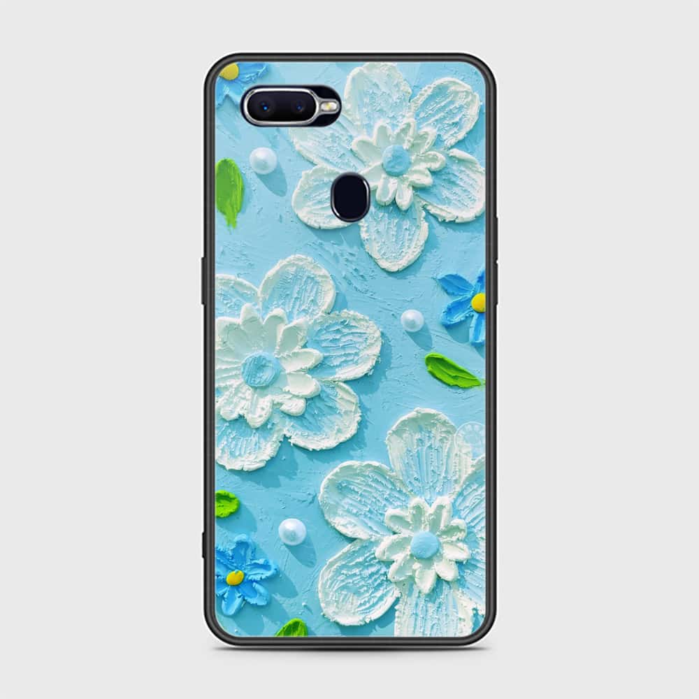 Oppo F9 Cover - Floral Series - Design 3 - Sky Blue - HQ Ultra Shine Premium Infinity Glass Soft Silicon Borders Case