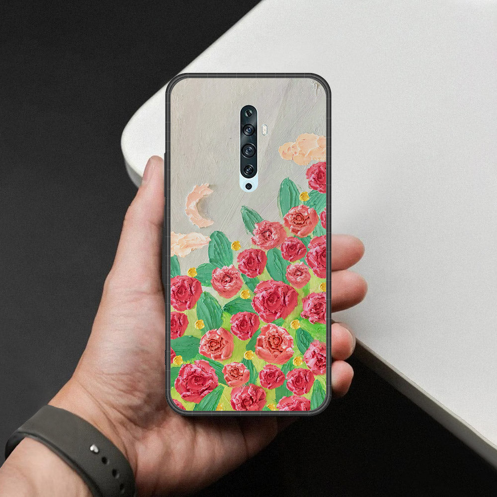 Oppo Reno 2 Cover - Floral Series - Design 10 - Red & Green - HQ Premium Shine Durable Shatterproof Case