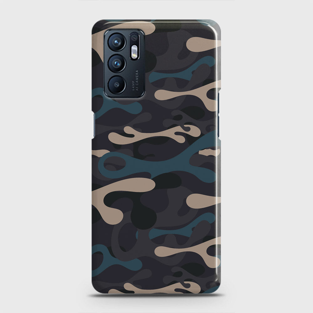 Oppo Reno 6 Cover - Camo Series - Blue & Grey Design - Matte Finish - Snap On Hard Case with LifeTime Colors Guarantee