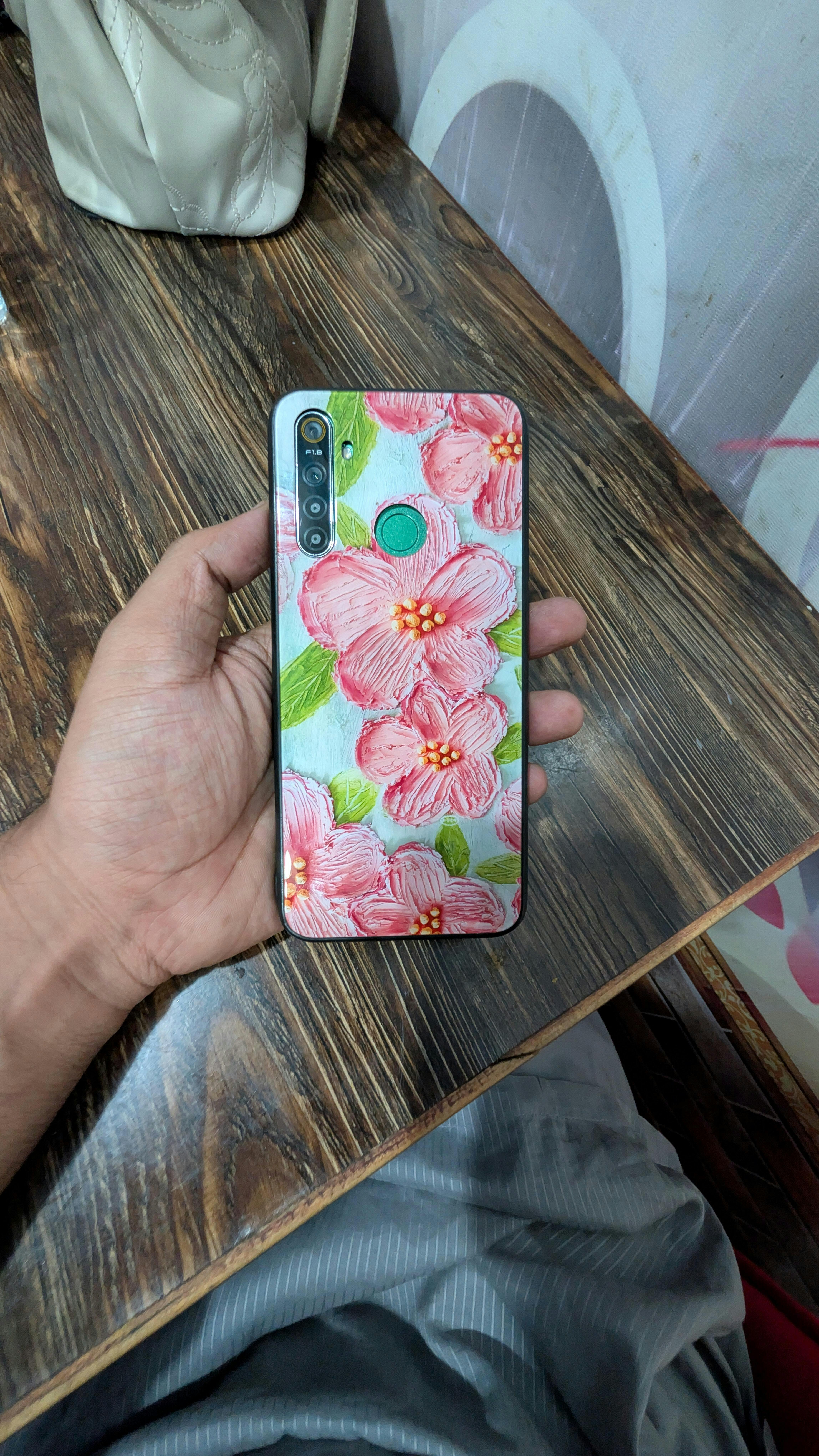 Realme 5i Cover - Floral Series - Design 9 - Pink & Green - HQ Ultra Shine Premium Infinity Glass Soft Silicon Borders Case