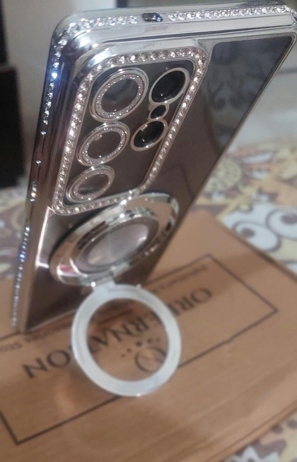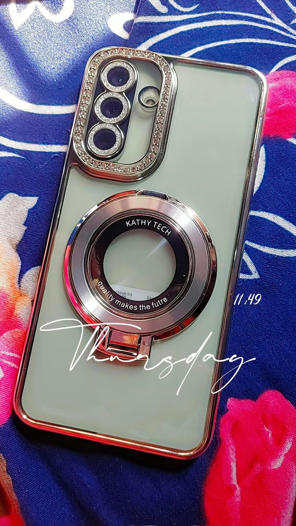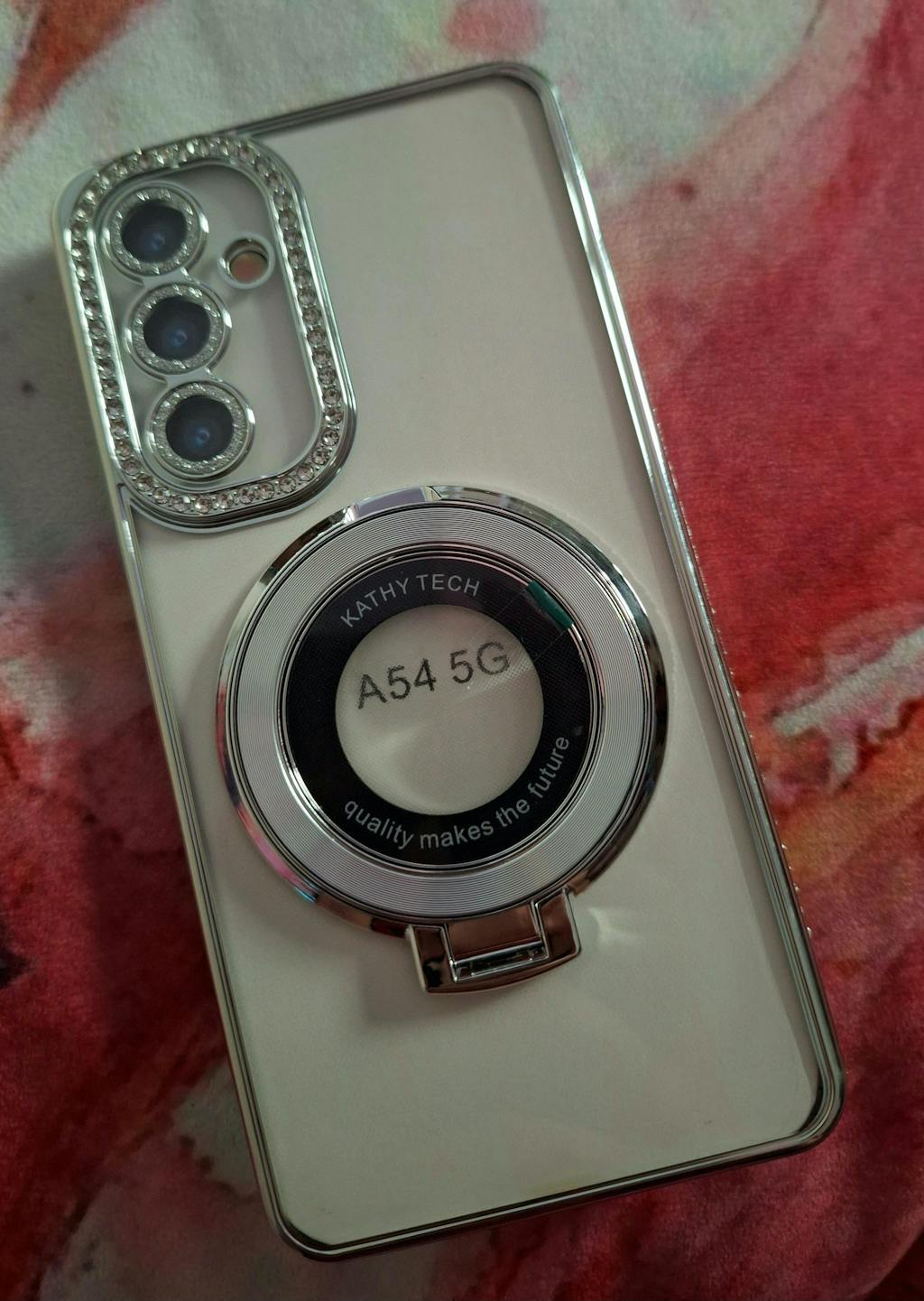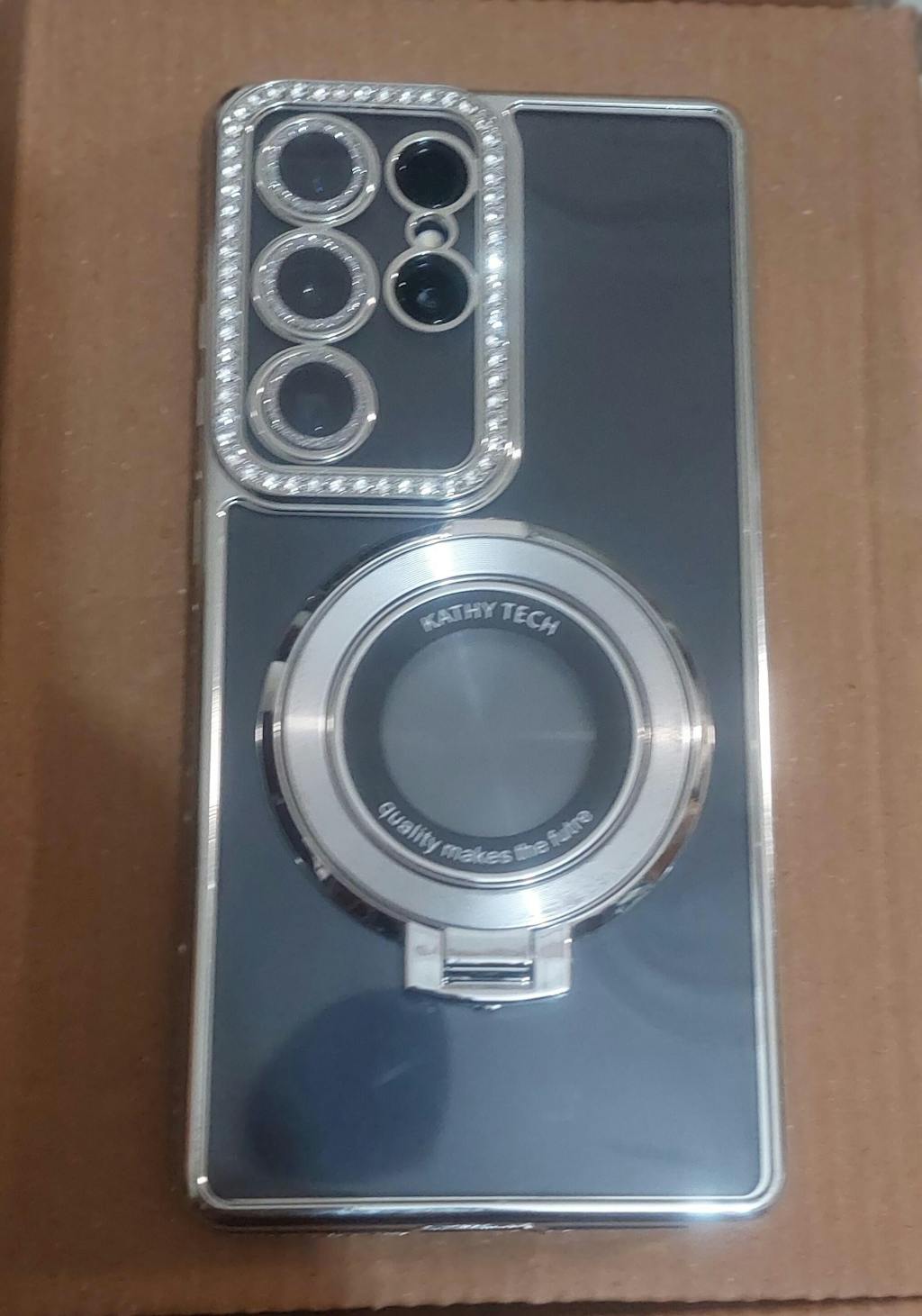 Samsung Galaxy A05 Cover - Silver - Luxury Diamond Rhinestones Color Electroplating Borders Magsafe Magnetic Stand Holder Soft Clear Case With Camera Protection