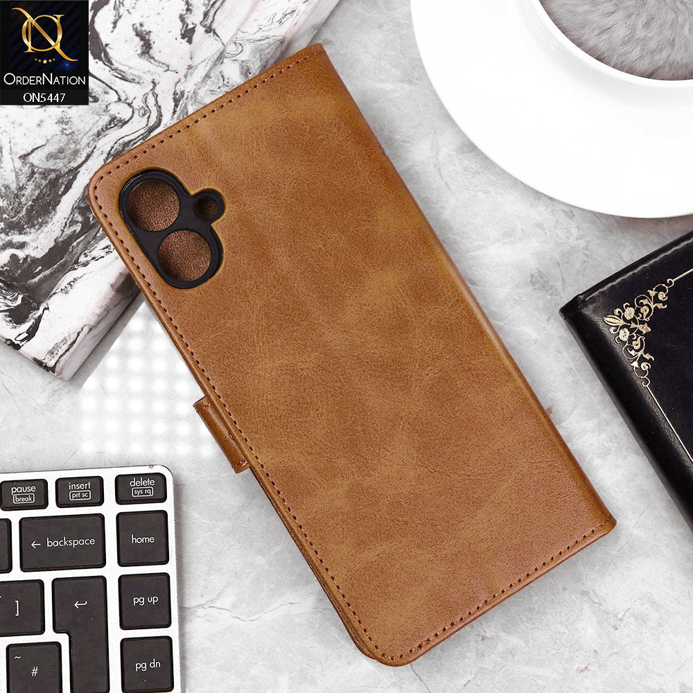 Samsung Galaxy A06 Cover - Light Brown - Premium Leather Megantic Flip Book Covers With Card Holding Option